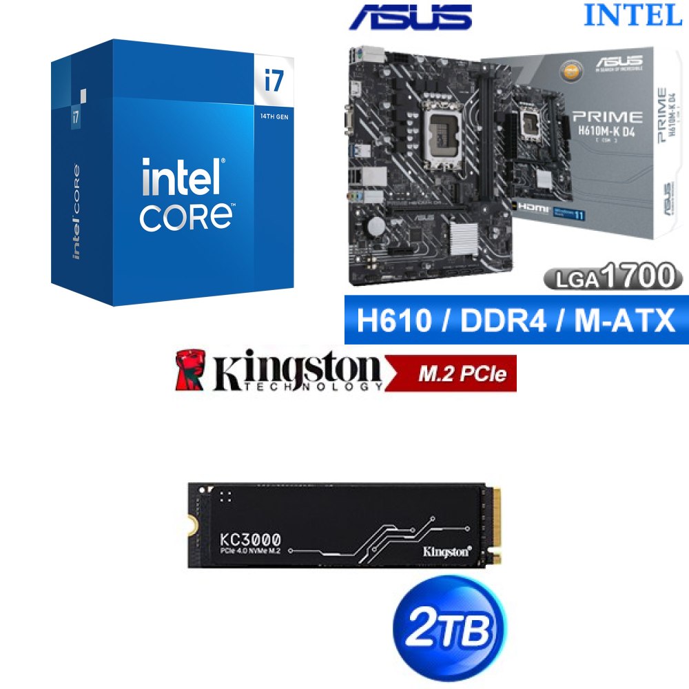 ☆裝機配★ i7-14700+華碩 PRIME H610M-K D4-CSM M-ATX主機板+金士頓 KC3000 2TB PCIe 4.0 NVMe M.2 SSD
