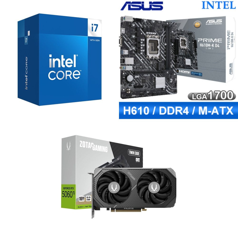 ☆裝機配★ i7-14700+華碩 PRIME H610M-K D4-CSM M-ATX主機板+索泰 RTX 5060 TI 16GB Twin Edge OC 顯示卡