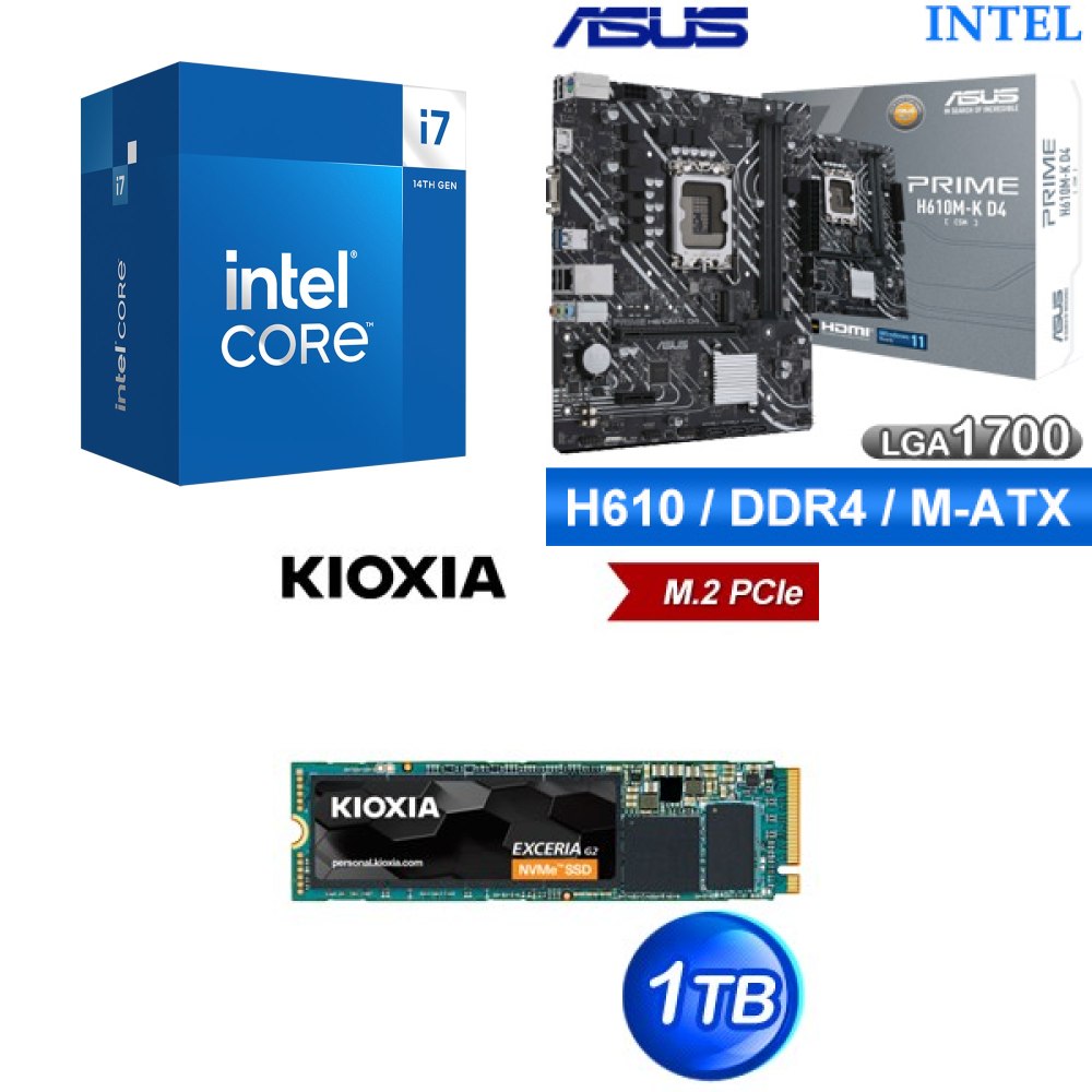 ☆裝機配★ i7-14700F+華碩 PRIME H610M-K D4-CSM M-ATX主機板+鎧俠 EXCERIA PLUS G3 1TB PCIe Gen4x4 SSD
