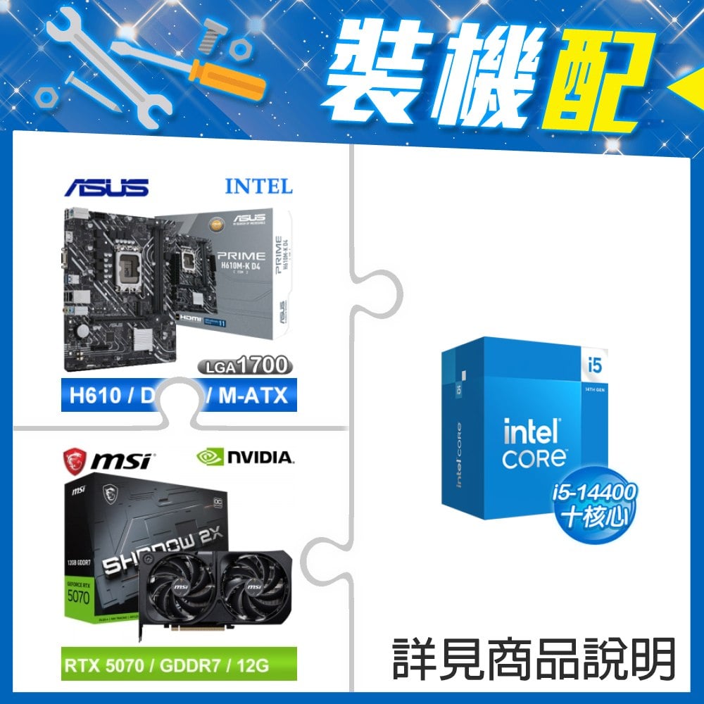 ☆裝機配★ i5-14400+華碩 PRIME H610M-K D4-CSM M-ATX主機板+微星 RTX 5070 12G SHADOW 2X OC 顯示卡