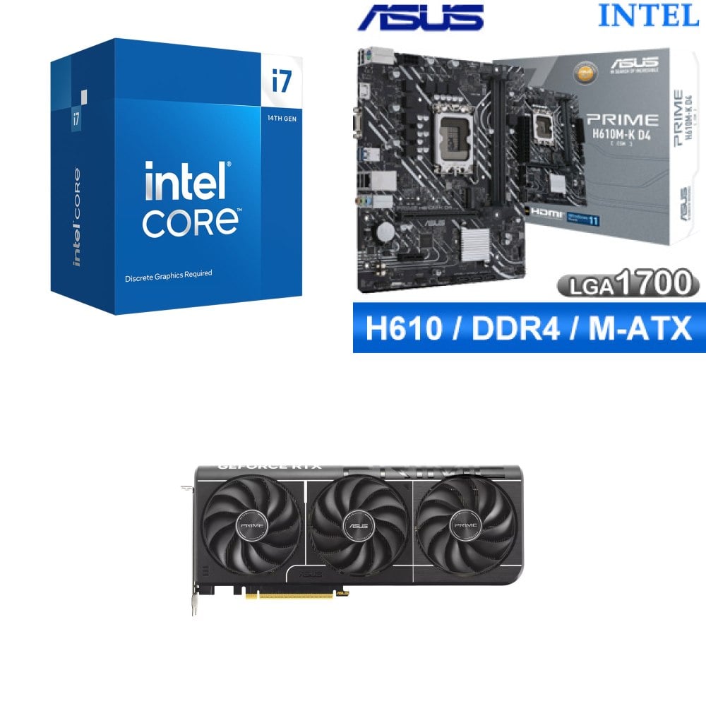 ☆裝機配★ i7-14700F+華碩 PRIME H610M-K D4-CSM M-ATX主機板+華碩 PRIME-RTX5070-O12G 顯示卡