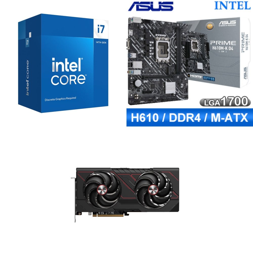 ☆裝機配★ i7-14700+華碩 PRIME H610M-K D4-CSM M-ATX主機板+藍寶石 黑鑽版 RX 7650 GRE GAMING OC 8GB 顯示卡