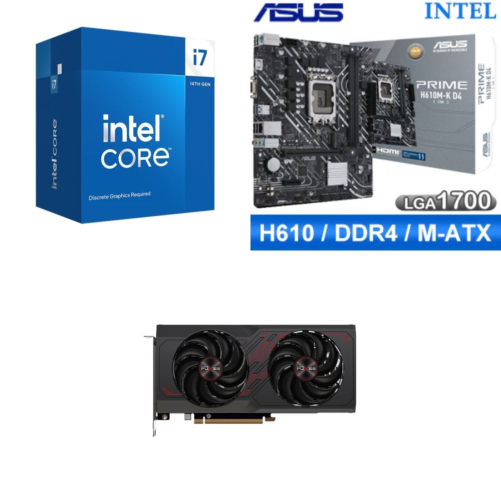 ☆裝機配★ i7-14700+華碩 PRIME H610M-K D4-CSM M-ATX主機板+藍寶石 PULSE 白金版 RX 7650 GRE GAMING 8GB 顯示卡
