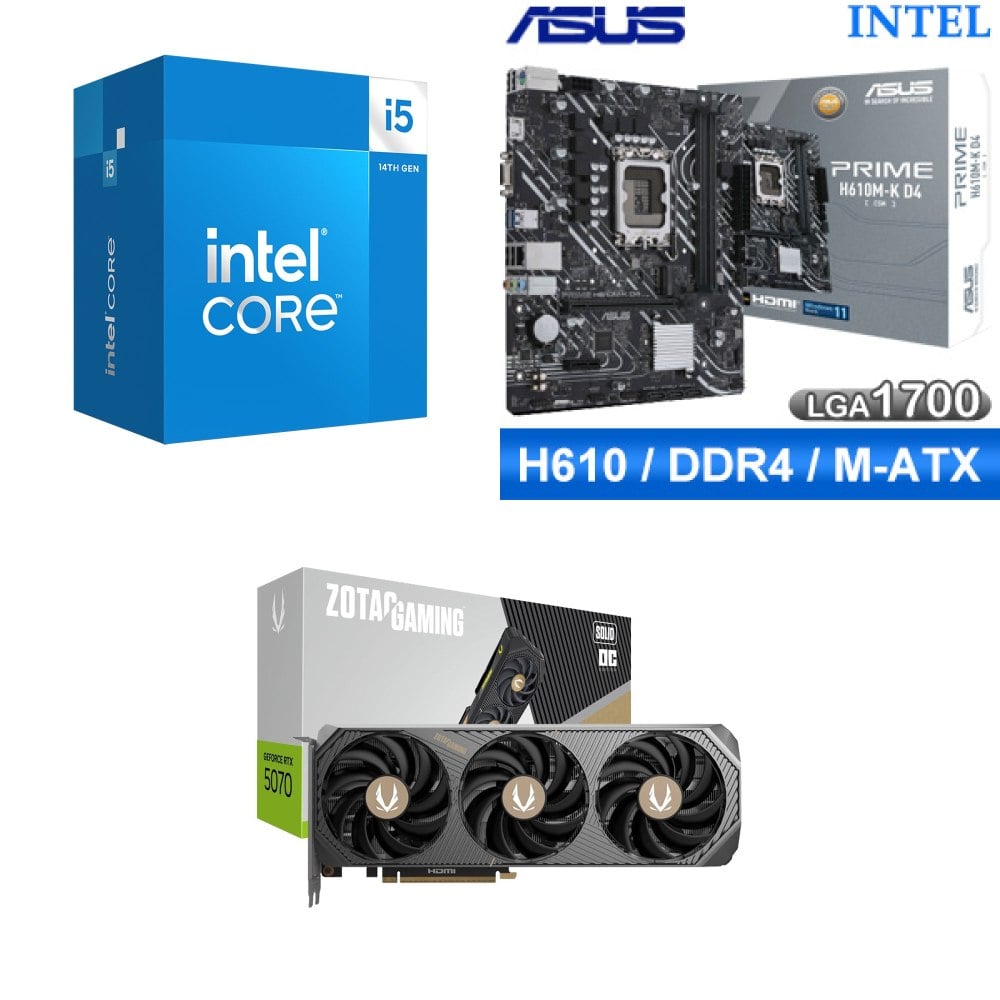 ☆裝機配★ i5-14400F+華碩 PRIME H610M-K D4-CSM M-ATX主機板+索泰 RTX 5070 SOLID OC 12G 顯示卡