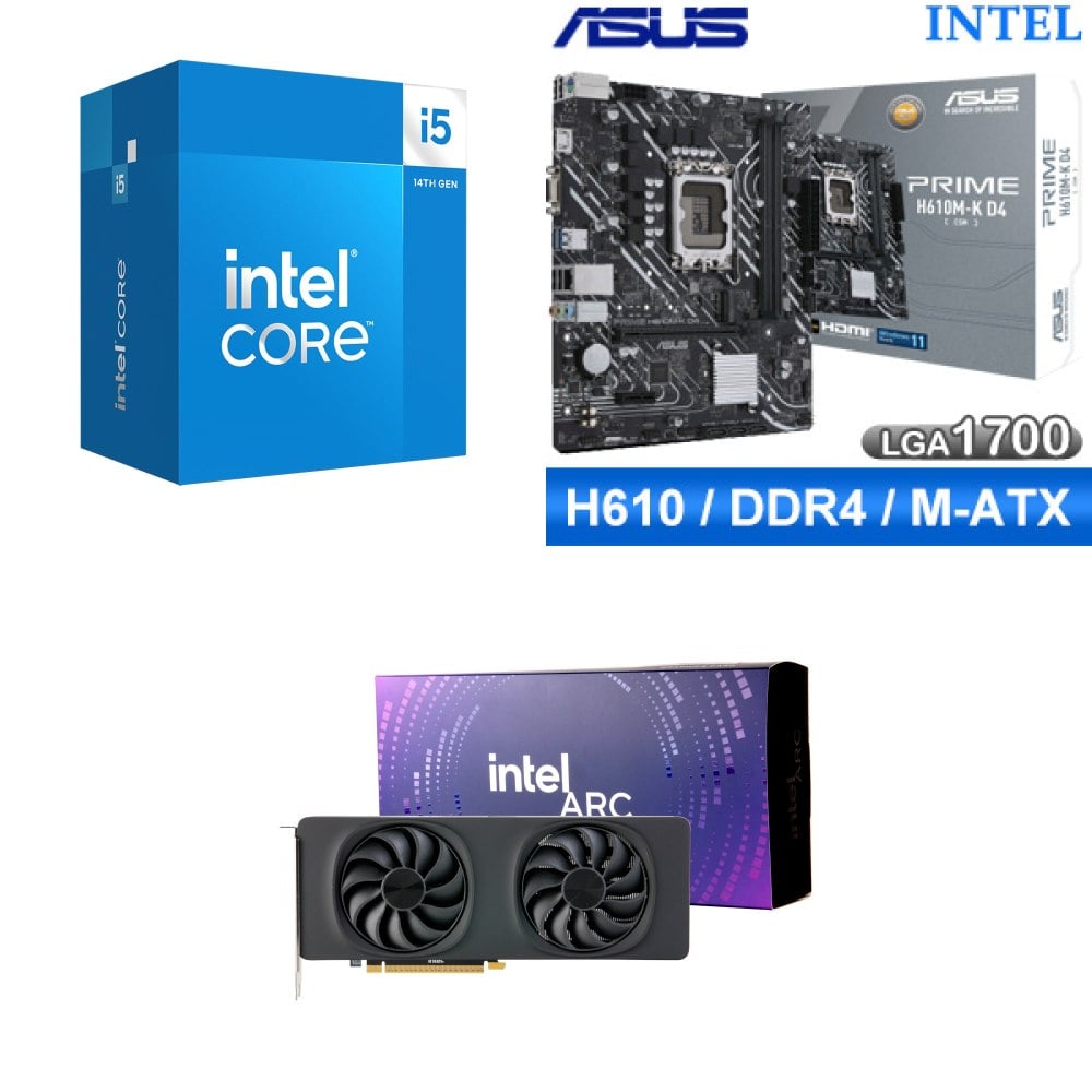 ☆裝機配★ i5-14400F+華碩 PRIME H610M-K D4-CSM M-ATX主機板+Intel Arc B580 12G 20 Core 顯示卡