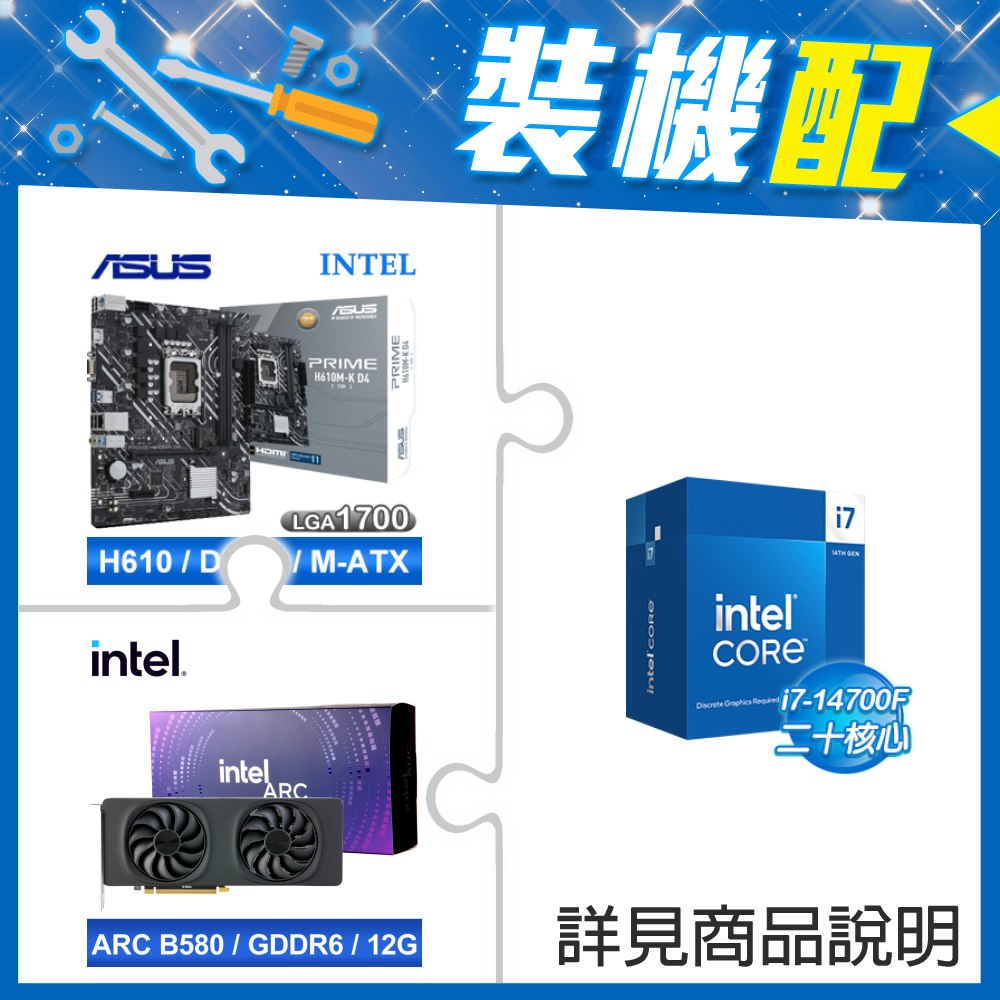 ☆裝機配★ i7-14700F+華碩 PRIME H610M-K D4-CSM M-ATX主機板+Intel Arc B580 12G 20 Core 顯示卡