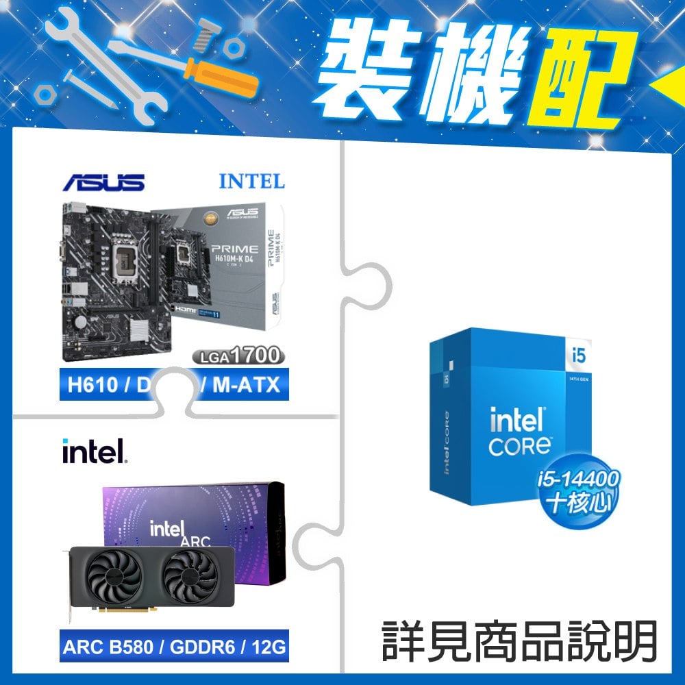 ☆裝機配★ i5-14400F+華碩 PRIME H610M-K D4-CSM M-ATX主機板+Intel Arc B580 12G 20 Core 顯示卡