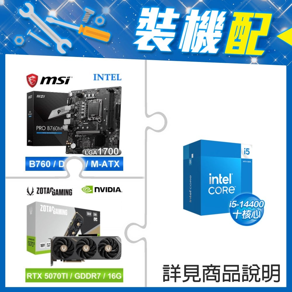 ☆裝機配★ i5-14400+微星 PRO B760M-E D5 MATX主機板+索泰 RTX 5070 TI SOLID CORE OC 16G 顯示卡