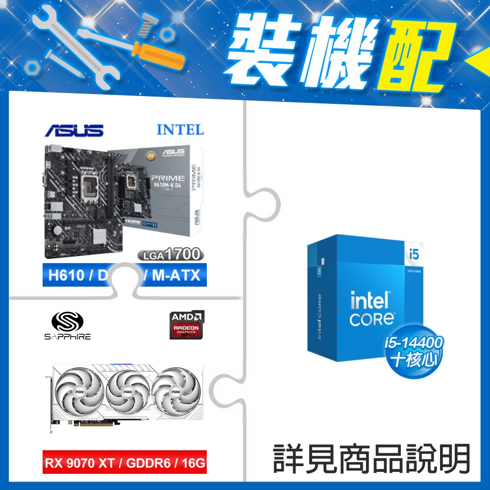 ☆裝機配★ i5-14400+華碩 PRIME H610M-K D4-CSM M-ATX主機板+藍寶石 PURE 極地 RX 9070 XT GAMING OC 16GB 顯示卡