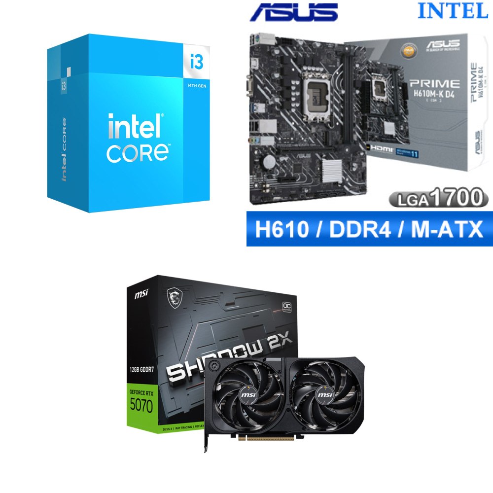 ☆裝機配★ i3-14100F+華碩 PRIME H610M-K D4-CSM M-ATX主機板+微星 RTX 5070 12G SHADOW 2X OC 顯示卡