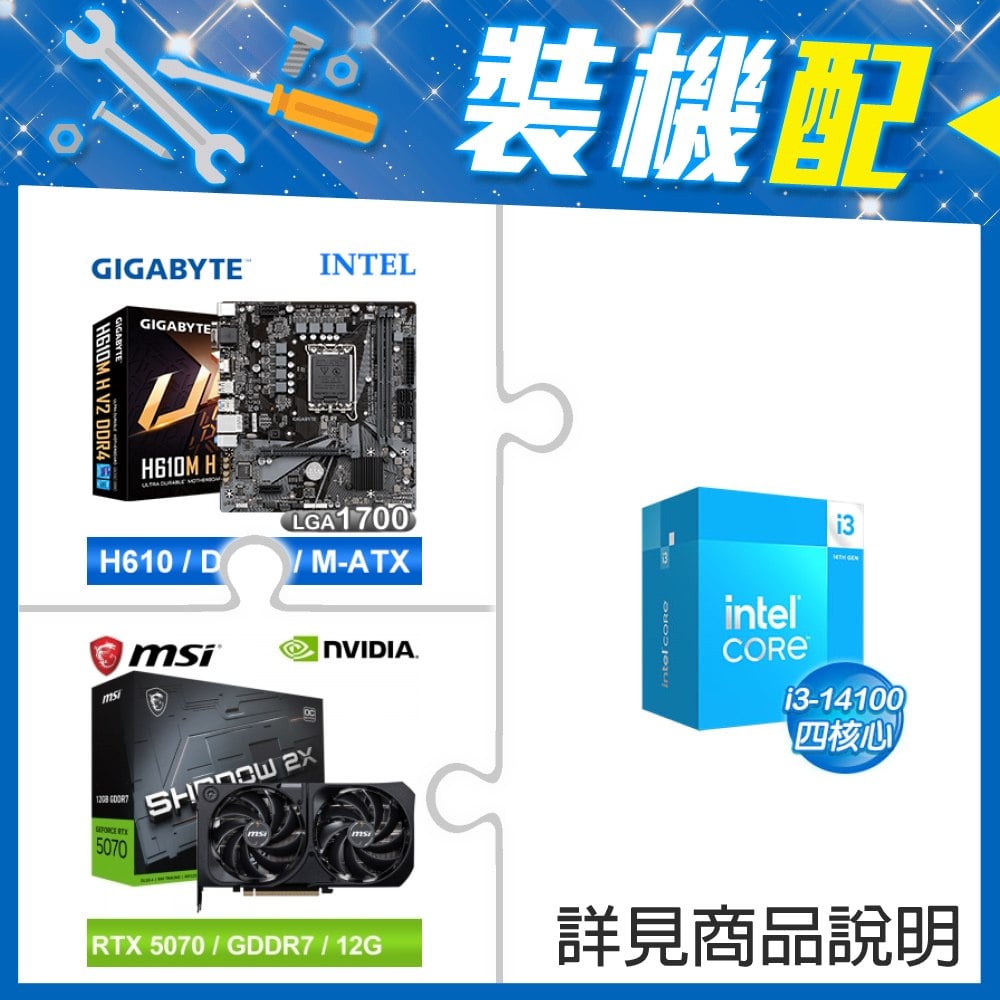 ☆裝機配★ i3-14100+技嘉 H610M H V2 D4 MATX主機板+微星 RTX 5070 12G SHADOW 2X OC 顯示卡