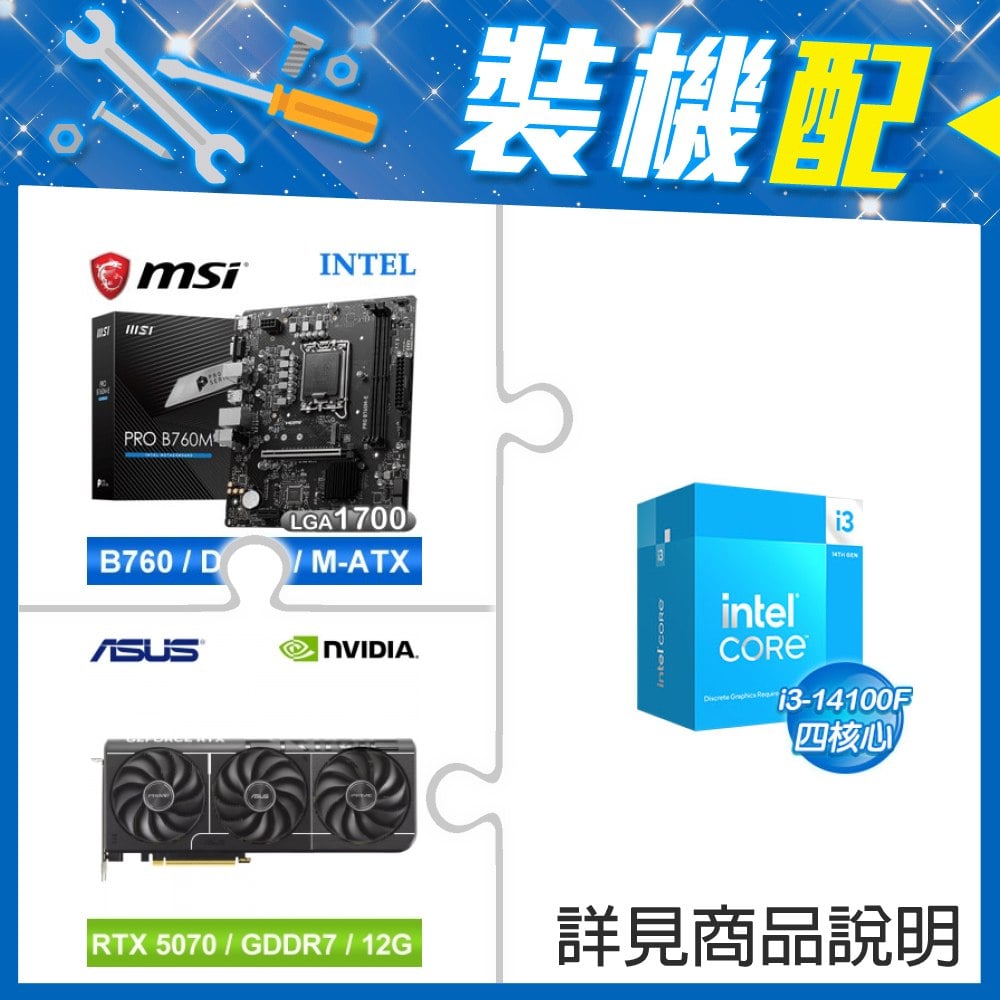 ☆裝機配★ i3-14100F+微星 PRO B760M-E D5 MATX主機板+華碩 PRIME-RTX5070-O12G 顯示卡