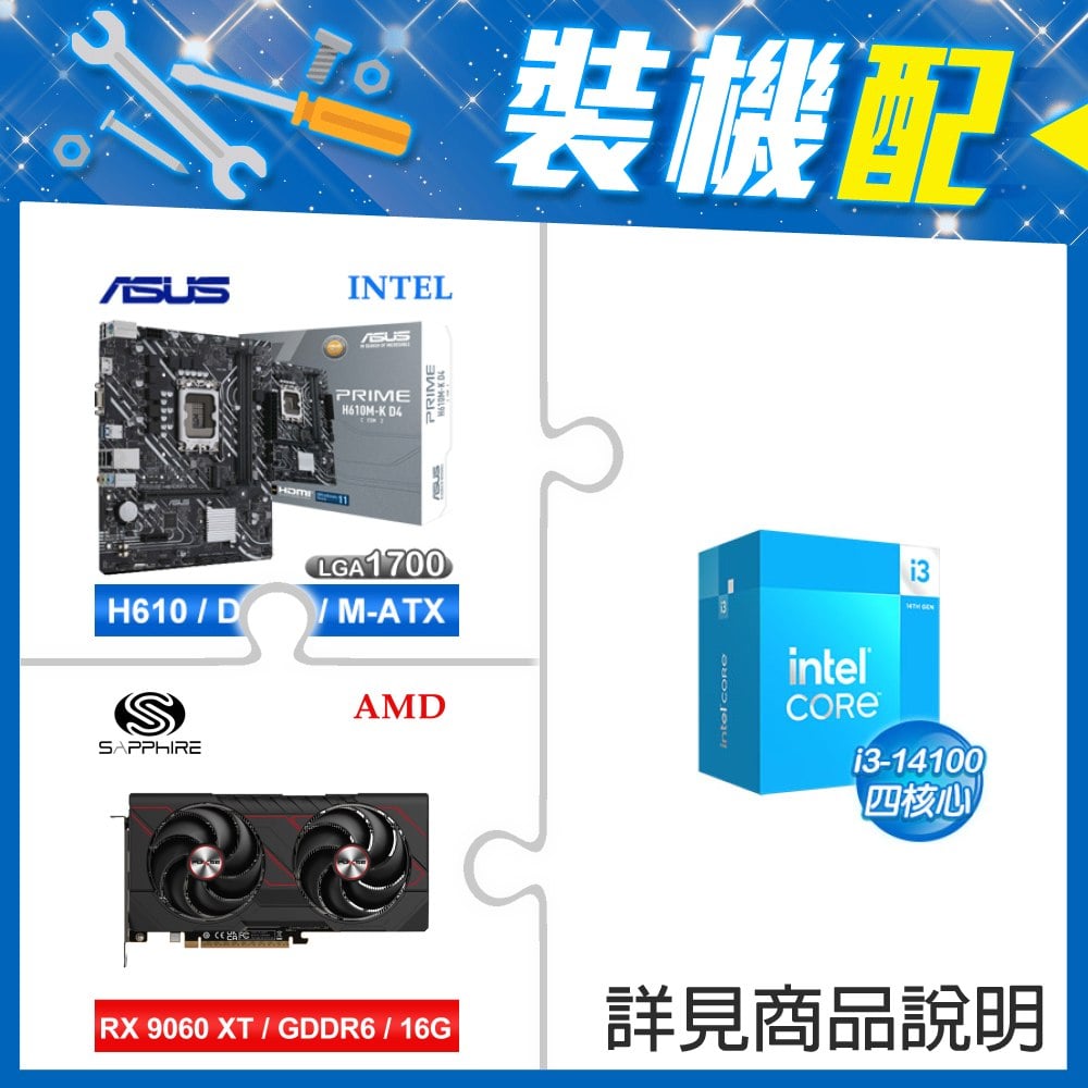 ☆裝機配★ i3-14100+華碩 PRIME H610M-K D4-CSM M-ATX主機板+藍寶石 PULSE 脈動 RX 9060 XT GAMING OC 16GB 顯示卡