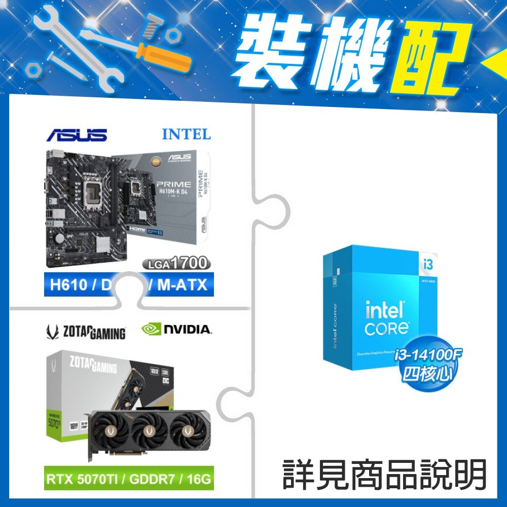 ☆裝機配★ i3-14100F+華碩 PRIME H610M-K D4-CSM M-ATX主機板+索泰 RTX 5070 TI SOLID CORE OC 16G 顯示卡