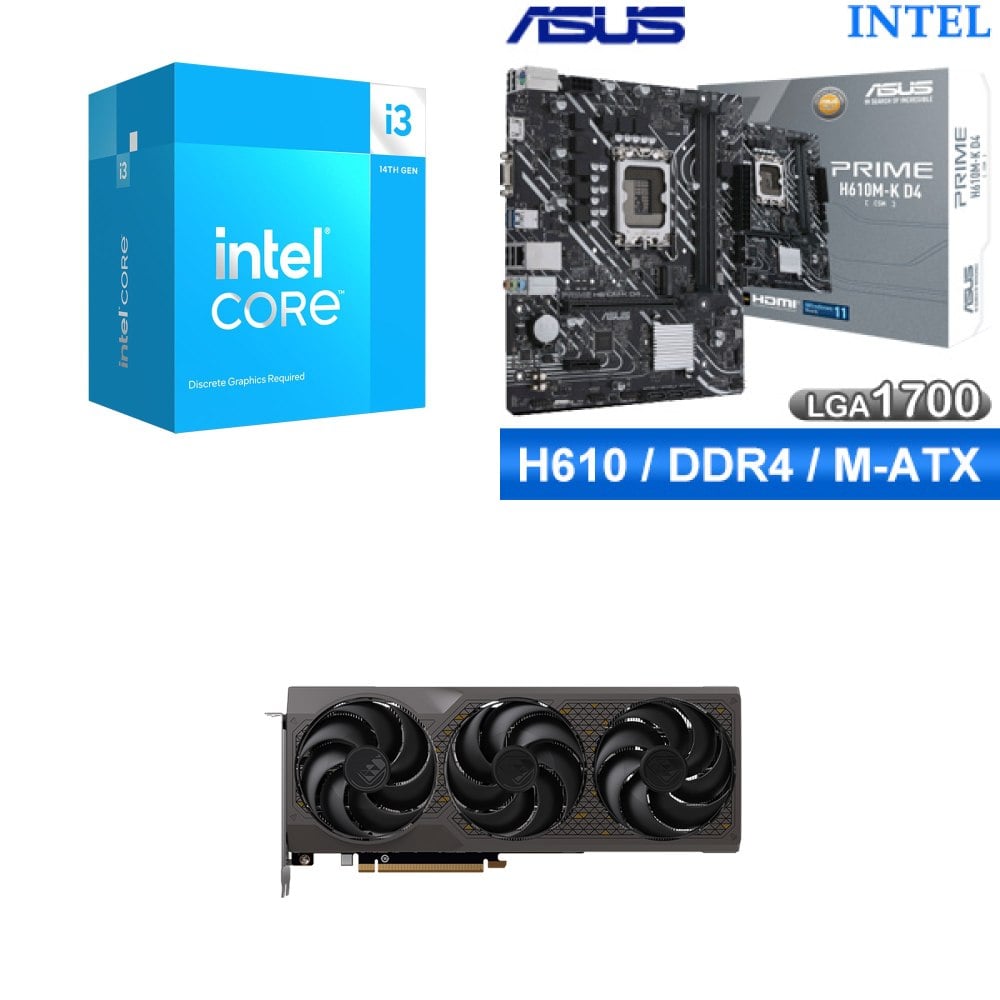 ☆裝機配★ i3-14100F+華碩 PRIME H610M-K D4-CSM M-ATX主機板+藍寶石 黑鑽版 RX 7650 GRE GAMING OC 8GB 顯示卡