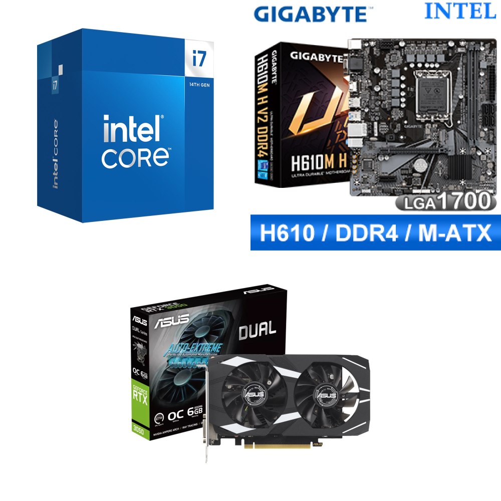 ☆裝機配★ i7-14700F+技嘉 H610M H V2 D4 MATX主機板+華碩 DUAL-RTX3050-O6G 顯示卡