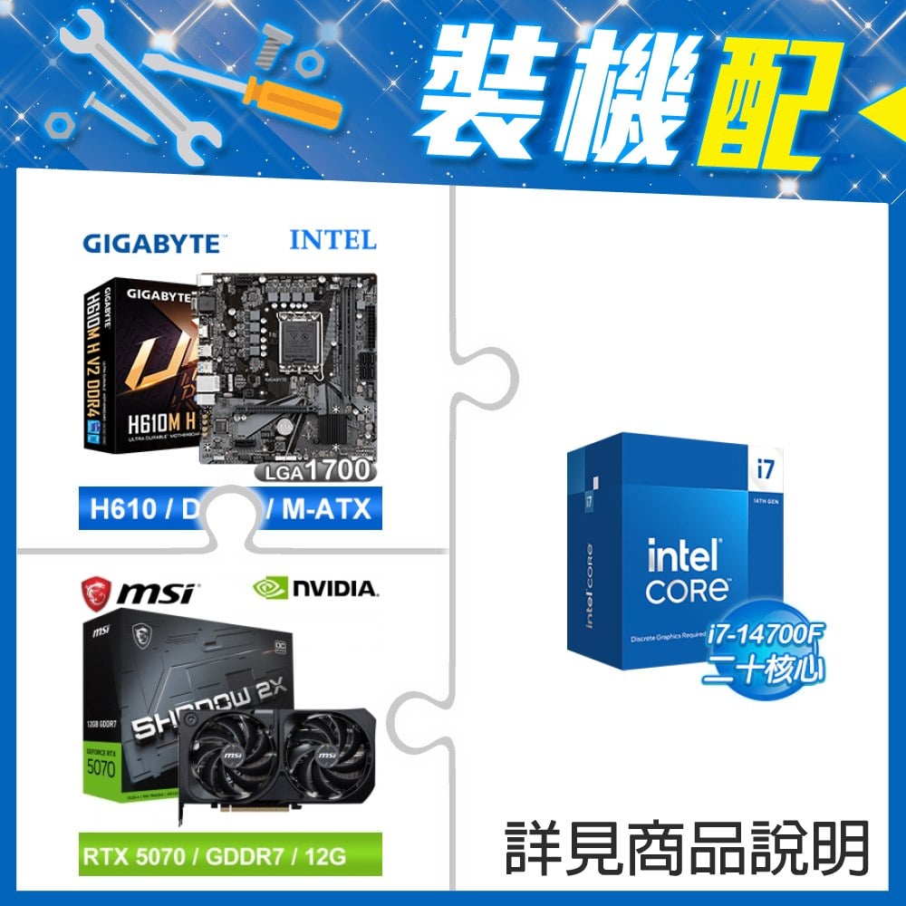 ☆裝機配★ i7-14700F+技嘉 H610M H V2 D4 MATX主機板+微星 RTX 5070 12G SHADOW 2X OC 顯示卡
