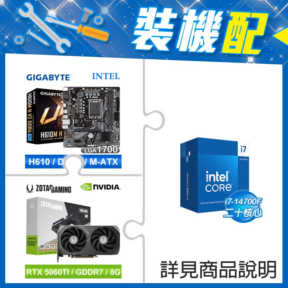 ☆裝機配★ i7-14700F+技嘉 H610M H V2 D4 MATX主機板+索泰 RTX 5060 TI 8GB Twin Edge OC 顯示卡