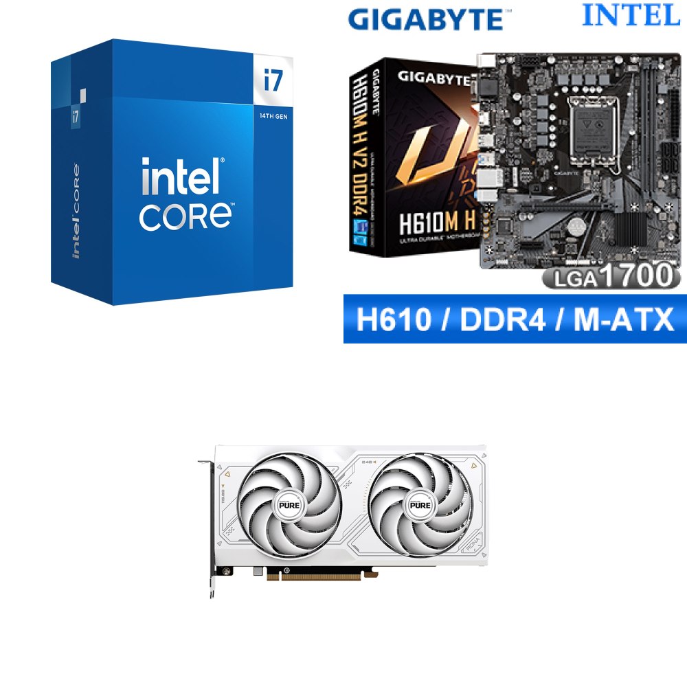 ☆裝機配★ i7-14700F+技嘉 H610M H V2 D4 MATX主機板+藍寶石 PURE 極地 RX 7650 GRE GAMING 8GB 顯示卡