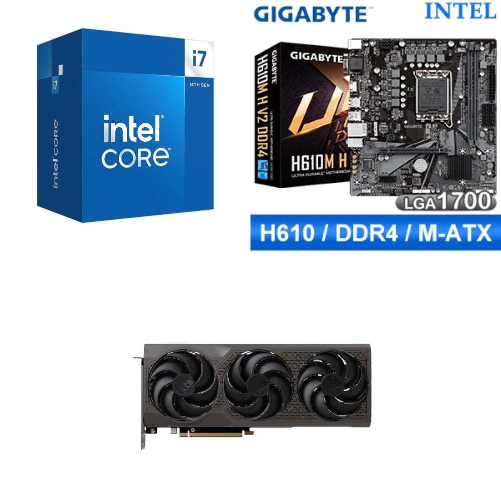 ☆裝機配★ i7-14700+技嘉 H610M H V2 D4 MATX主機板+藍寶石 PULSE 白金版 RX 7650 GRE GAMING 8GB 顯示卡