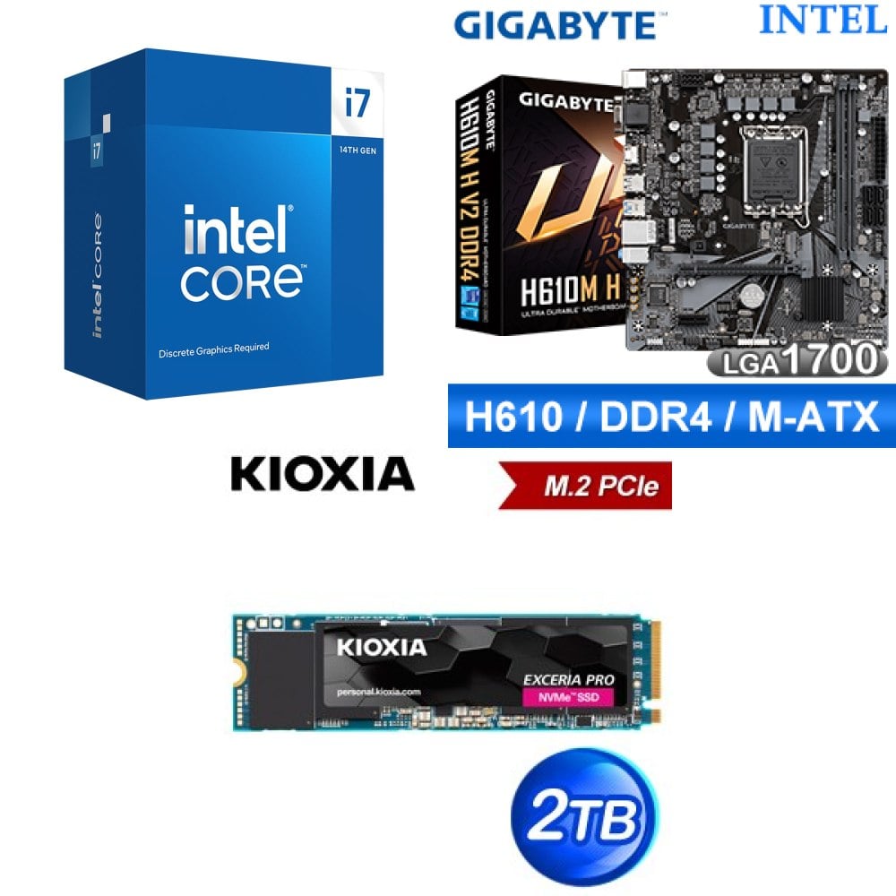 ☆裝機配★ i7-14700F+技嘉 H610M H V2 D4 MATX主機板+鎧俠 EXCERIA PRO 2TB PCIe Gen4x4 SSD