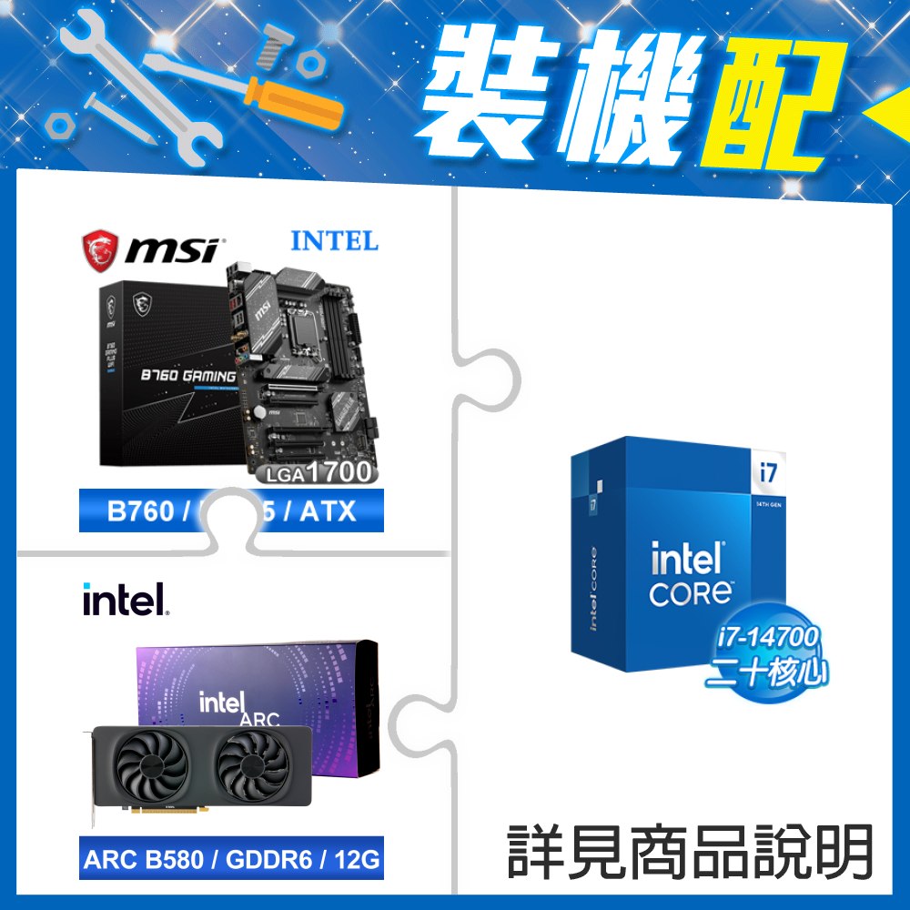 ☆裝機配★ i7-14700F+微星 B760 GAMING PLUS WIFI D5 ATX主機板+Intel Arc B580 12G 20 Core 顯示卡