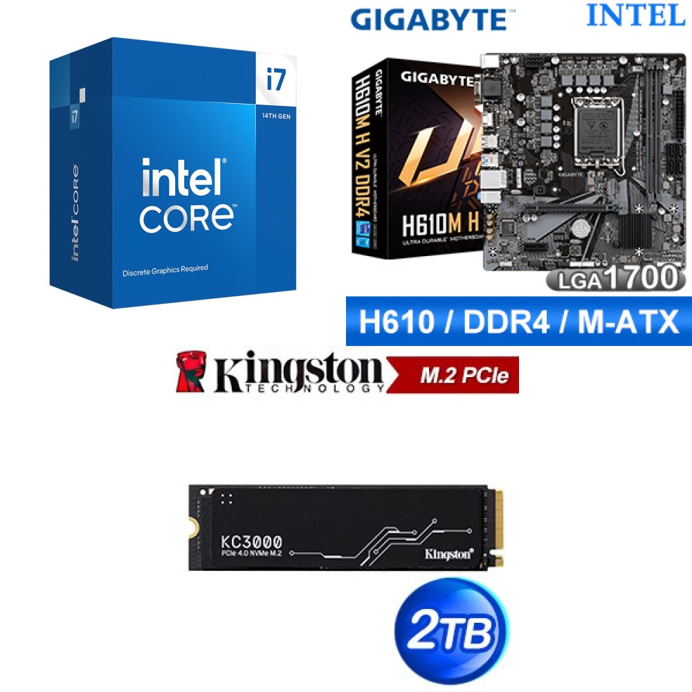 ☆裝機配★ i7-14700+技嘉 H610M H V2 D4 MATX主機板+金士頓 KC3000 2TB PCIe 4.0 NVMe M.2 SSD