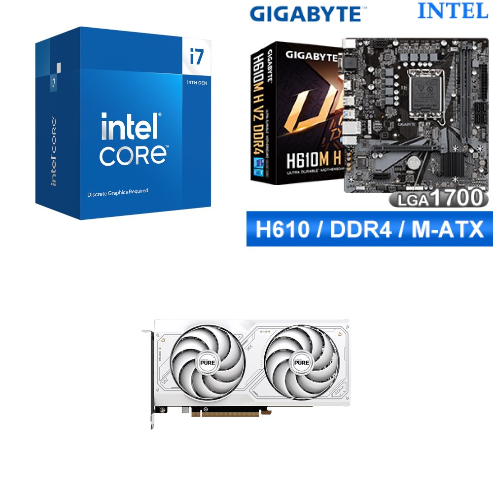 ☆裝機配★ i7-14700F+技嘉 H610M H V2 D4 MATX主機板+藍寶石 PURE 極地 RX 7650 GRE GAMING 8GB 顯示卡