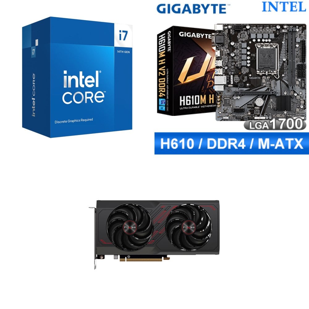 ☆裝機配★ i7-14700+技嘉 H610M H V2 D4 MATX主機板+藍寶石 PULSE 白金版 RX 7650 GRE GAMING 8GB 顯示卡