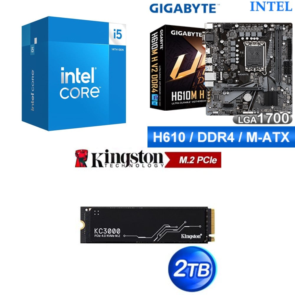 ☆裝機配★ i5-14400+技嘉 H610M H V2 D4 MATX主機板+金士頓 KC3000 2TB PCIe 4.0 NVMe M.2 SSD