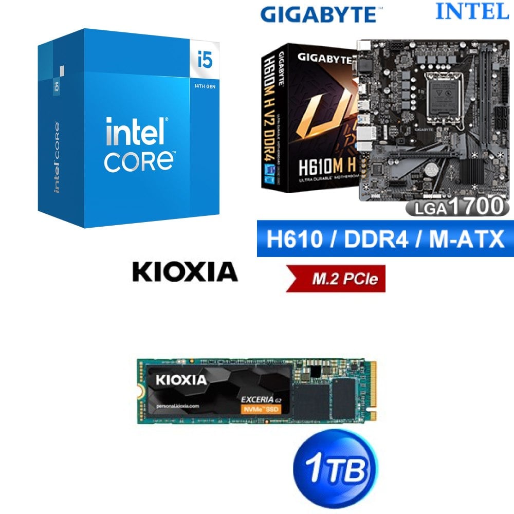 ☆裝機配★ i5-14400F+技嘉 H610M H V2 D4 MATX主機板+鎧俠 EXCERIA G2 1TB PCIe Gen3x4 SSD
