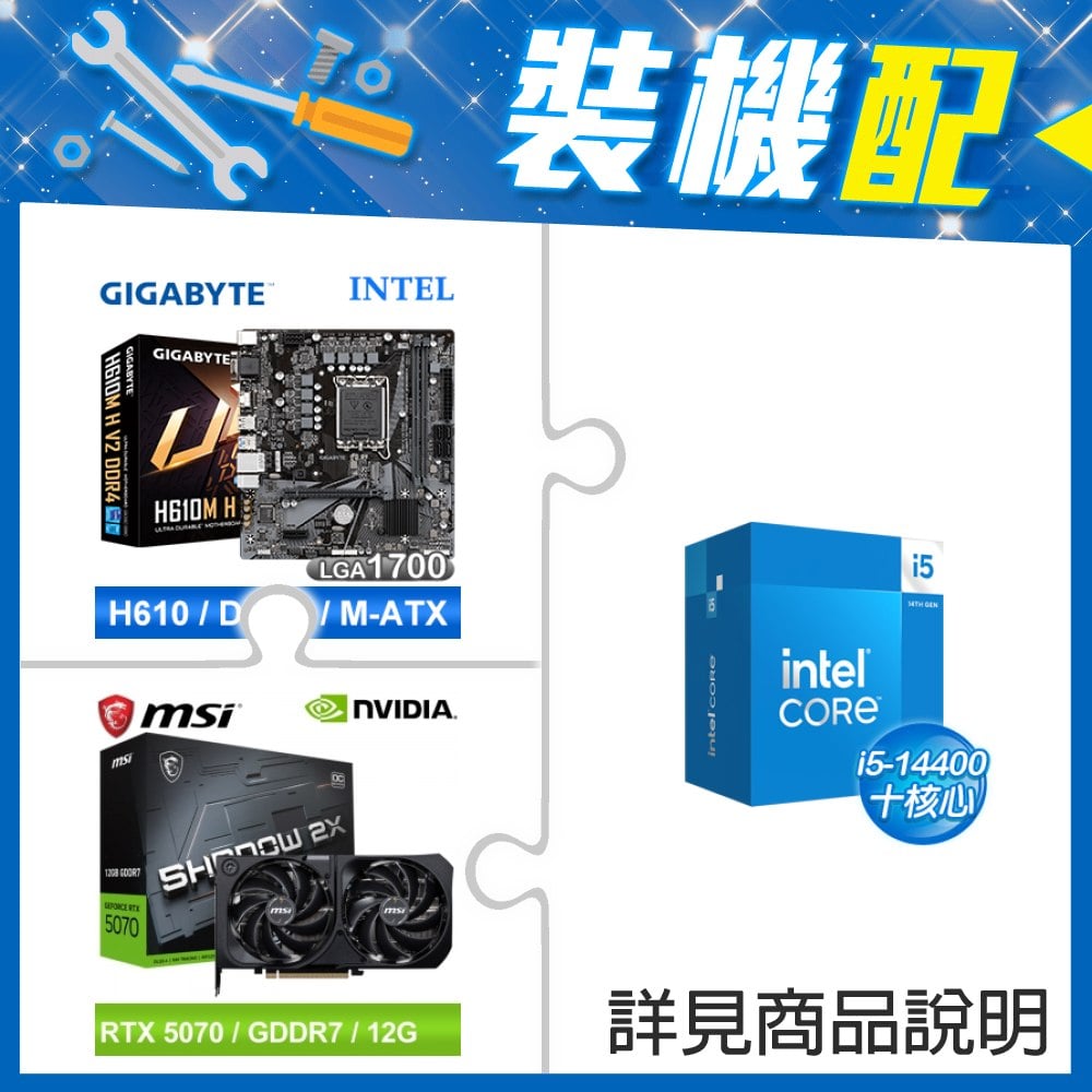 ☆裝機配★ i5-14400+技嘉 H610M H V2 D4 MATX主機板+微星 RTX 5070 12G SHADOW 2X OC 顯示卡