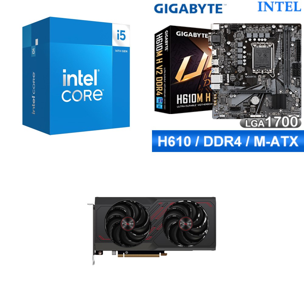 ☆裝機配★ i5-14400+技嘉 H610M H V2 D4 MATX主機板+藍寶石 PULSE 白金版 RX 7650 GRE GAMING 8GB 顯示卡