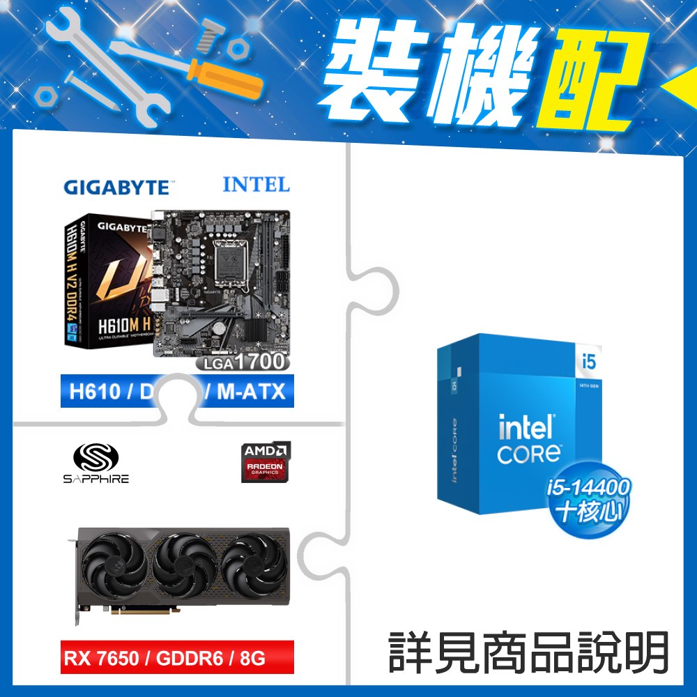 ☆裝機配★ i5-14400F+技嘉 H610M H V2 D4 MATX主機板+藍寶石 PULSE 白金版 RX 7650 GRE GAMING 8GB 顯示卡