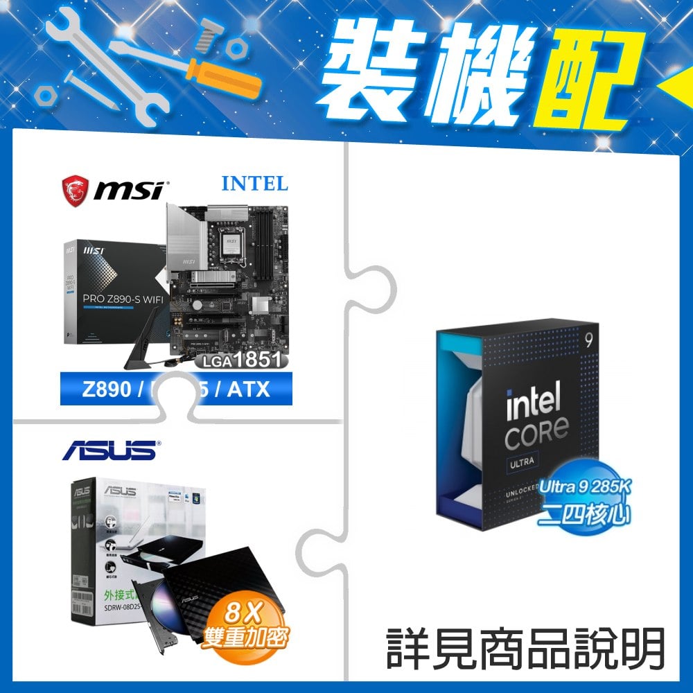 ☆裝機配★ Core U9 285K+微星 PRO Z890-S WIFI D5 ATX主機板+華碩 SDRW-08D2S-U 外接式燒錄機《黑》
