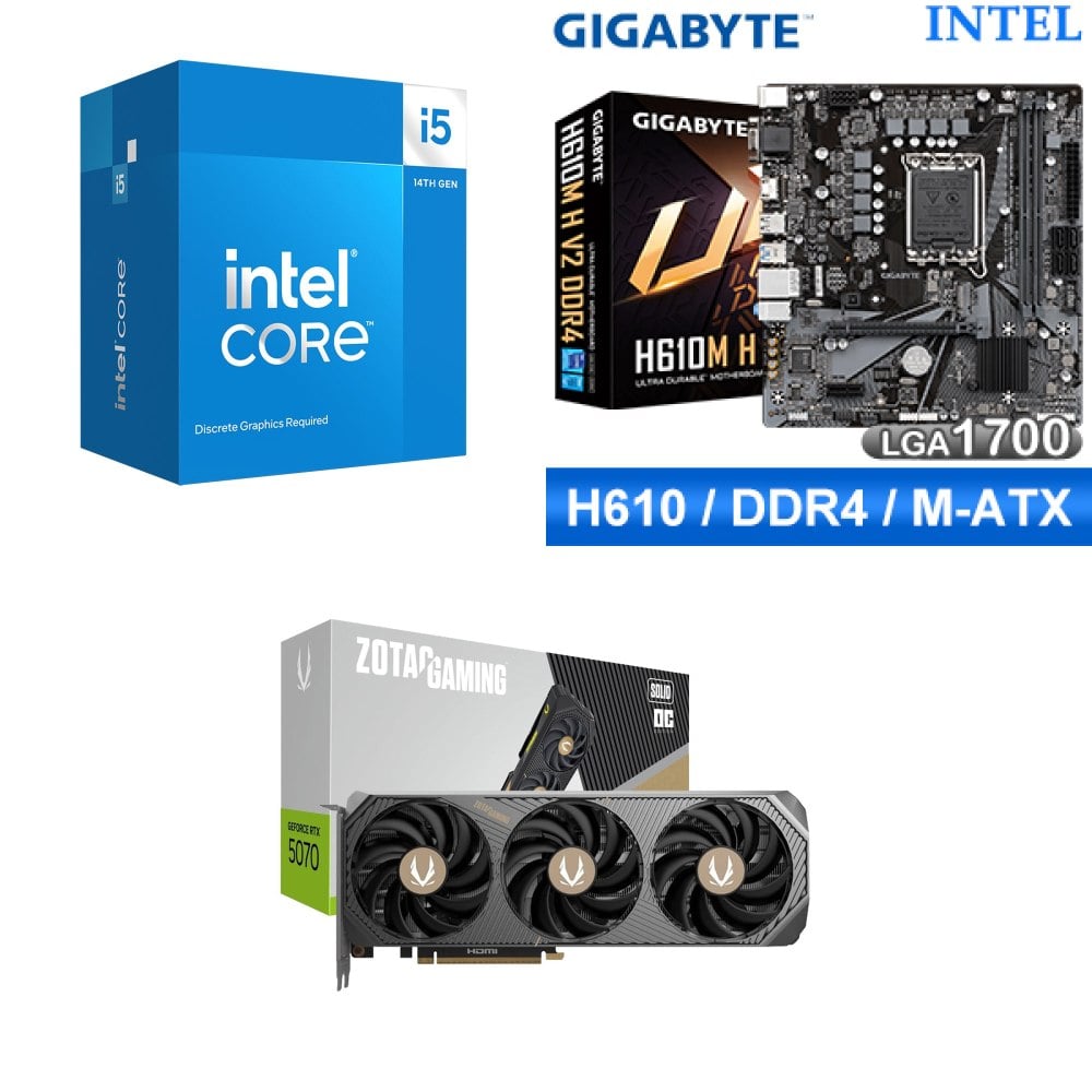 ☆裝機配★ i5-14400F+技嘉 H610M H V2 D4 MATX主機板+索泰 RTX 5070 SOLID OC 12G 顯示卡