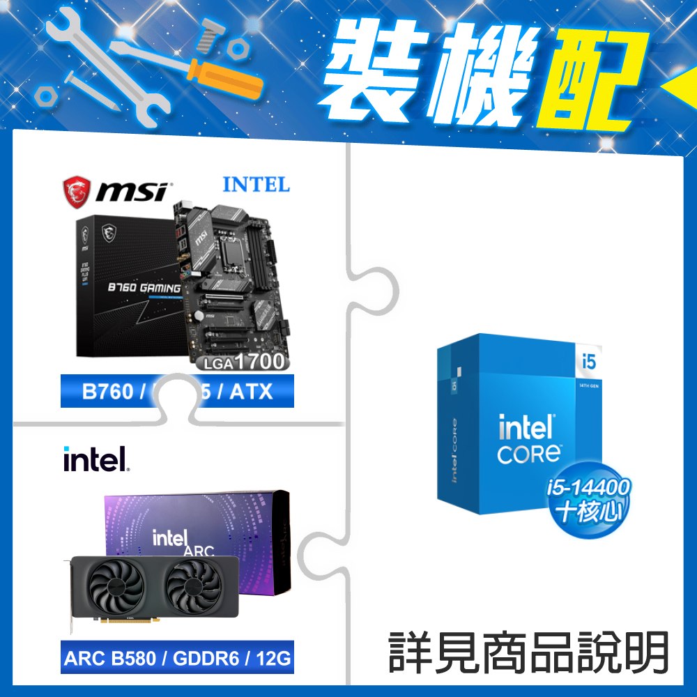 ☆裝機配★ i5-14400+微星 B760 GAMING PLUS WIFI D5 ATX主機板+Intel Arc B580 12G 20 Core 顯示卡