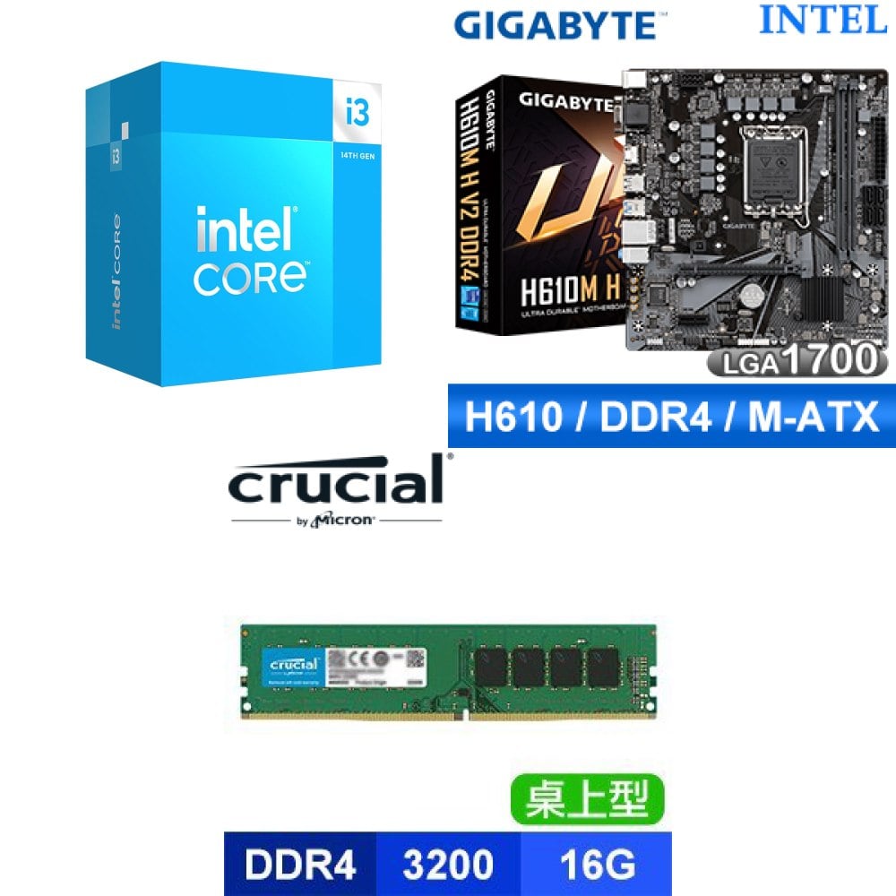 ☆裝機配★ i3-14100F+技嘉 H610M H V2 D4 MATX主機板+美光 DDR4-3200 16G 記憶體