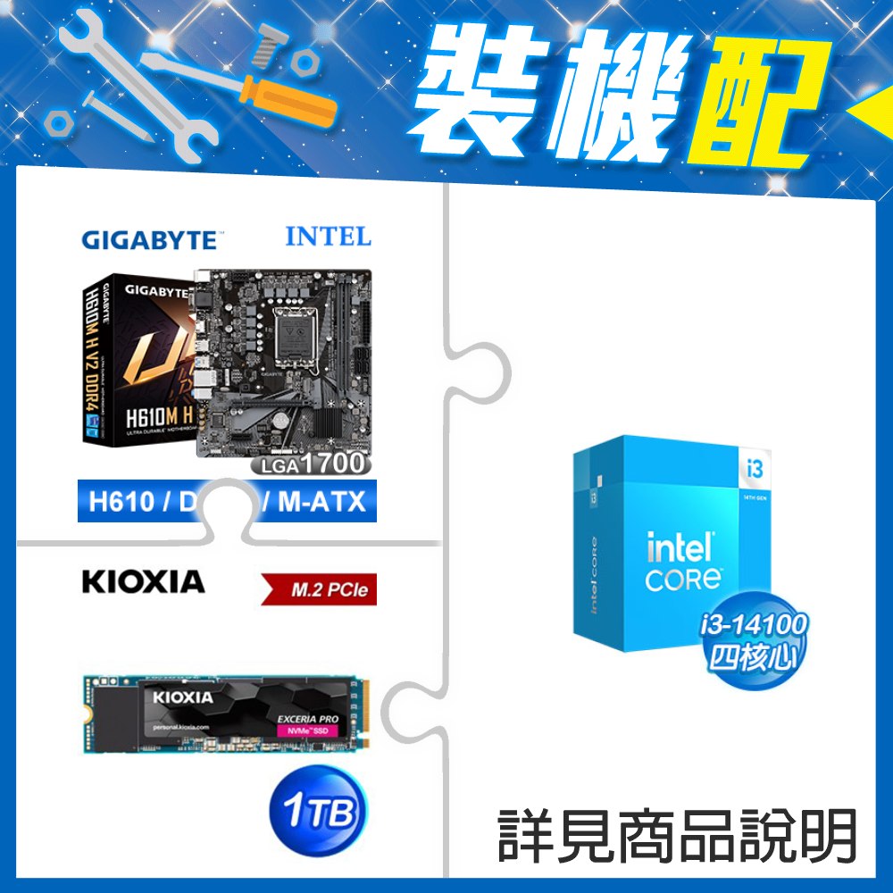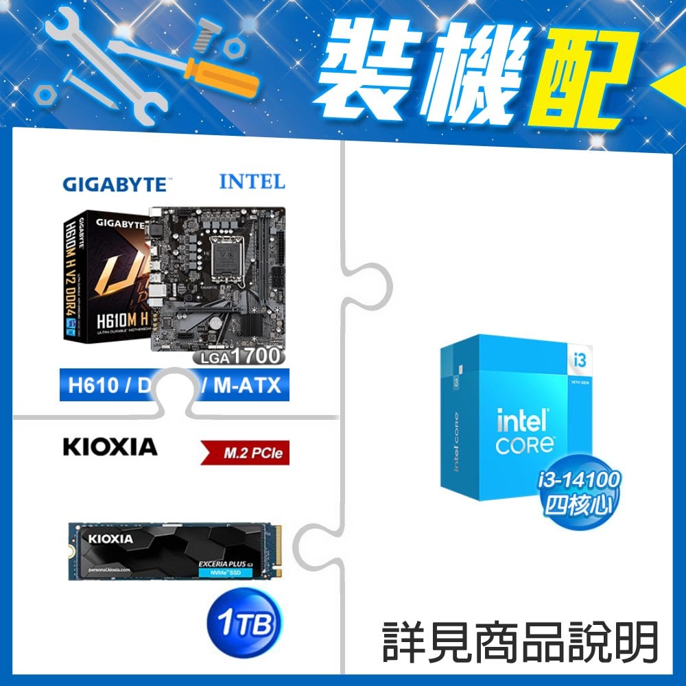 ☆裝機配★ i3-14100F+技嘉 H610M H V2 D4 MATX主機板+鎧俠 EXCERIA PRO 1TB PCIe Gen4x4 SSD