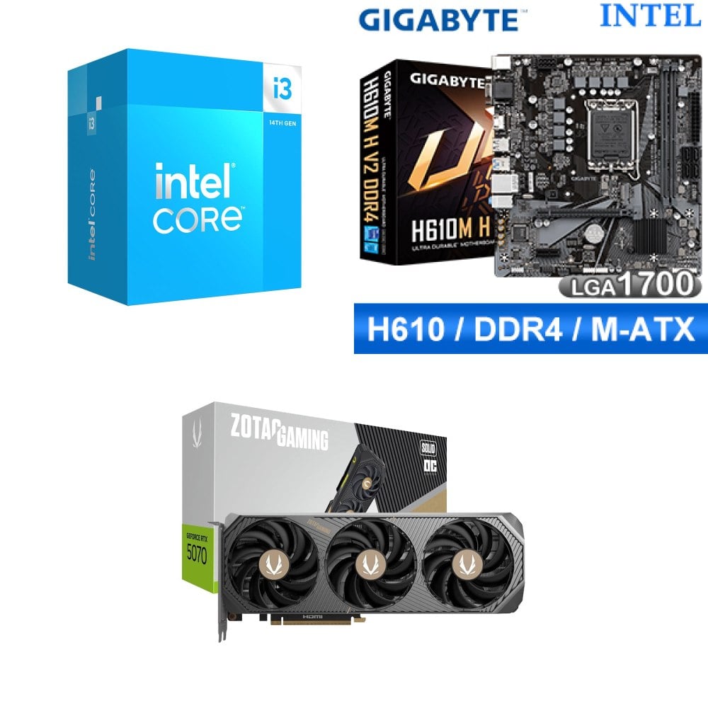 ☆裝機配★ i3-14100F+技嘉 H610M H V2 D4 MATX主機板+索泰 RTX 5070 SOLID OC 12G 顯示卡