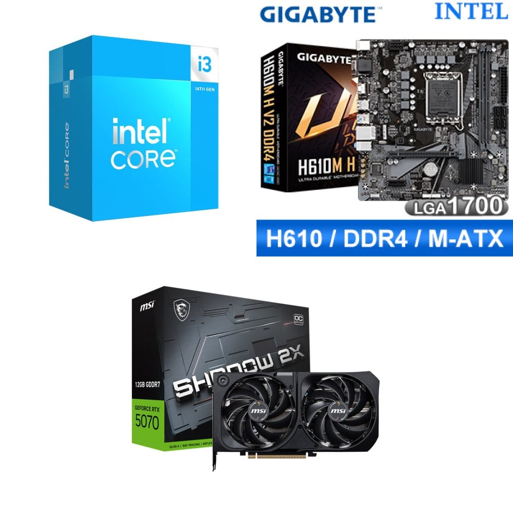 ☆裝機配★ i3-14100F+技嘉 H610M H V2 D4 MATX主機板+微星 RTX 5070 12G SHADOW 2X OC 顯示卡