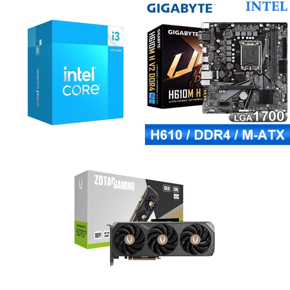 ☆裝機配★ i3-14100F+技嘉 H610M H V2 D4 MATX主機板+索泰 RTX 5070 TI SOLID CORE OC 16G 顯示卡