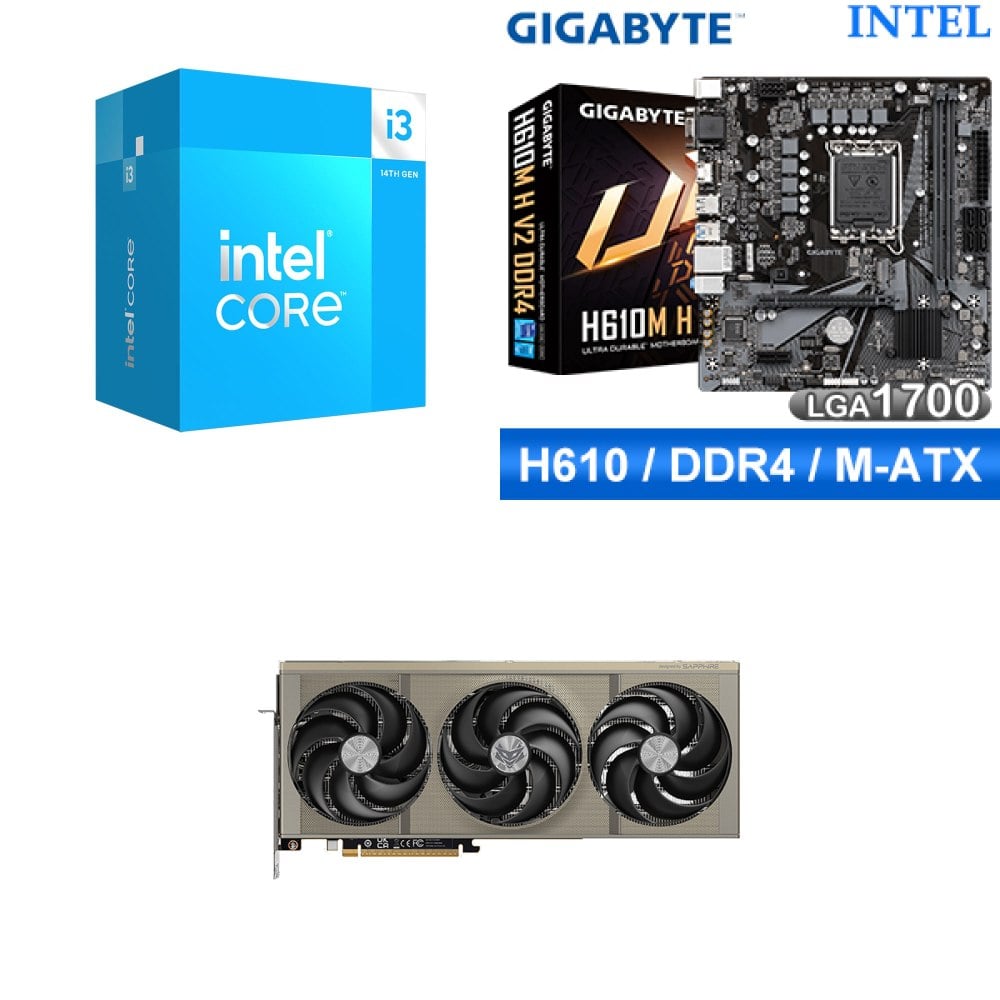 ☆裝機配★ i3-14100F+技嘉 H610M H V2 D4 MATX主機板+藍寶石 PULSE 脈動 RX 9070 GRE GAMING 12GB 顯示卡