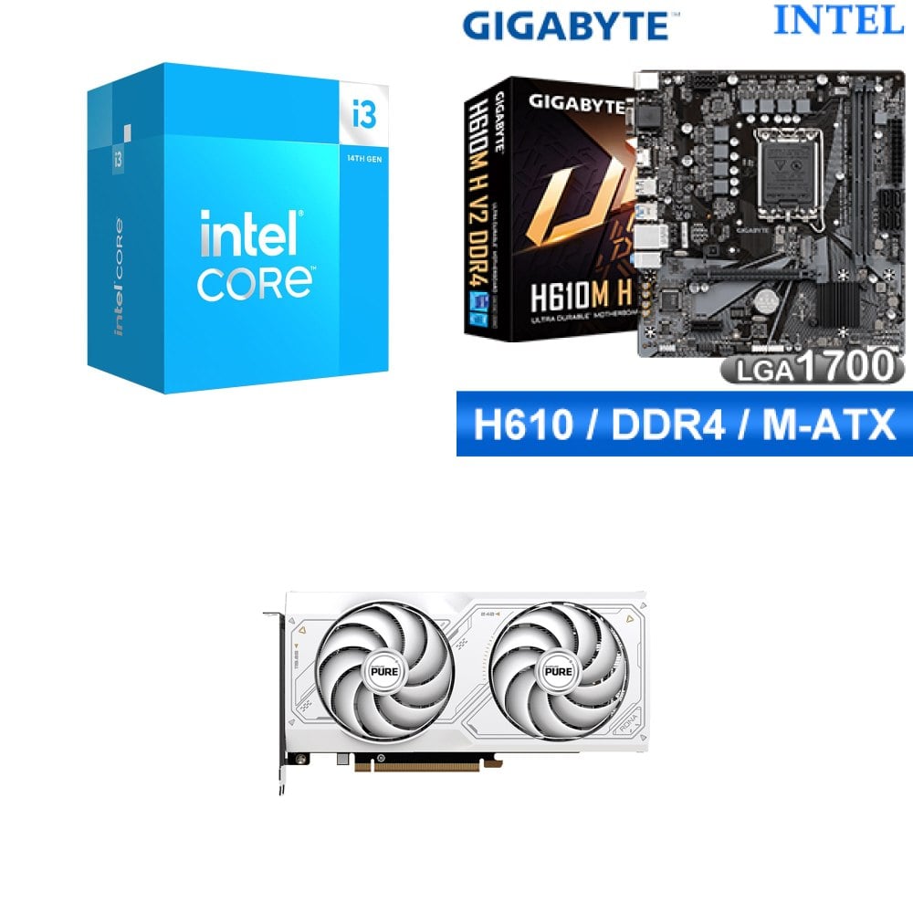 ☆裝機配★ i3-14100F+技嘉 H610M H V2 D4 MATX主機板+藍寶石 PURE 極地 RX 7650 GRE GAMING 8GB 顯示卡