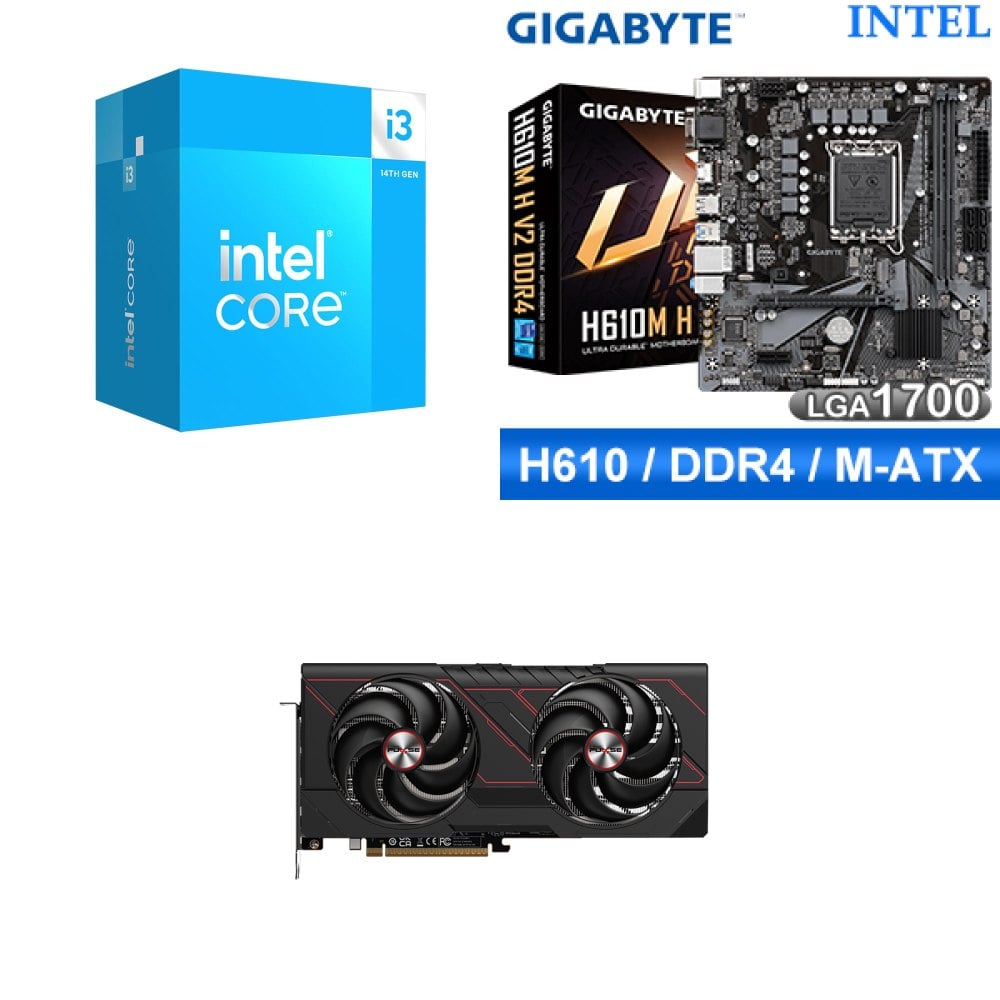 ☆裝機配★ i3-14100F+技嘉 H610M H V2 D4 MATX主機板+藍寶石 PULSE 脈動 RX 9060 XT GAMING OC 16GB 顯示卡