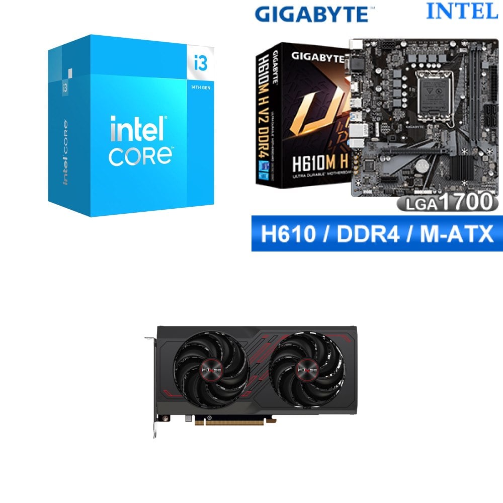 ☆裝機配★ i3-14100F+技嘉 H610M H V2 D4 MATX主機板+藍寶石 PULSE 白金版 RX 7650 GRE GAMING 8GB 顯示卡