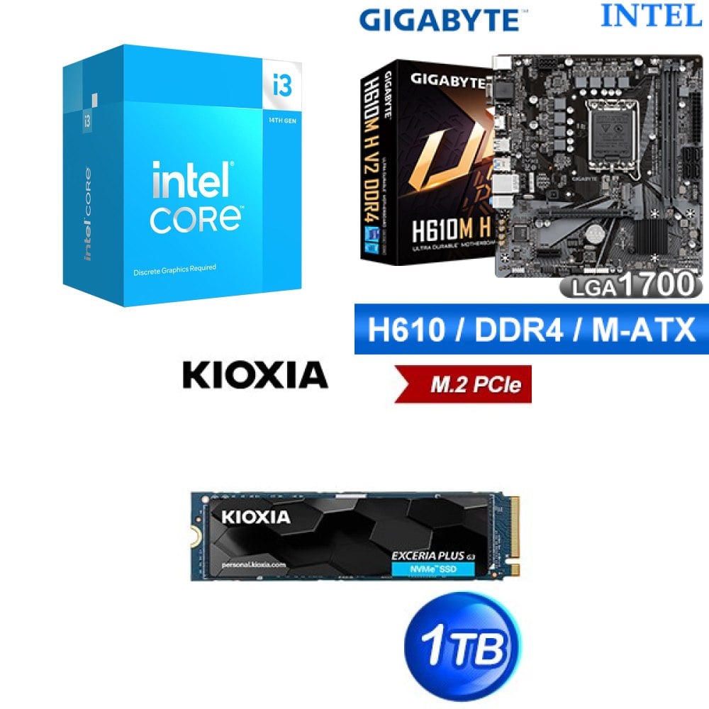 ☆裝機配★ i3-14100F+技嘉 H610M H V2 D4 MATX主機板+鎧俠 EXCERIA PLUS G3 1TB PCIe Gen4x4 SSD