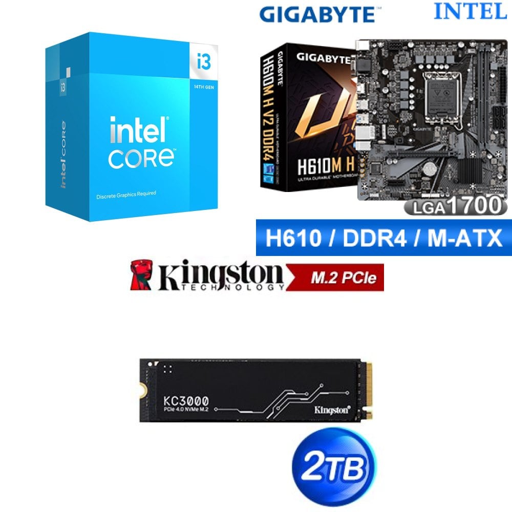 ☆裝機配★ i3-14100F+技嘉 H610M H V2 D4 MATX主機板+金士頓 KC3000 2TB PCIe 4.0 NVMe M.2 SSD