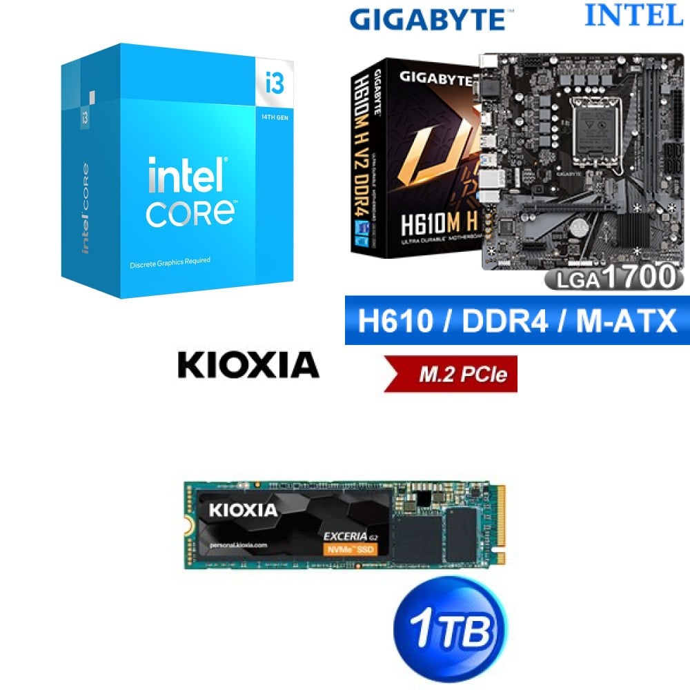 ☆裝機配★ i3-14100F+技嘉 H610M H V2 D4 MATX主機板+鎧俠 EXCERIA G2 1TB PCIe Gen3x4 SSD