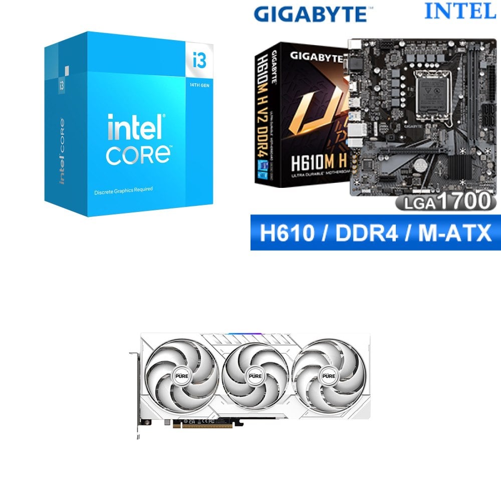 ☆裝機配★ i3-14100F+技嘉 H610M H V2 D4 MATX主機板+藍寶石 PURE 極地 RX 9070 XT GAMING OC 16GB 顯示卡